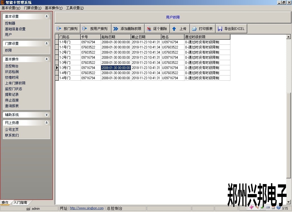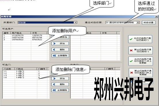 允許已選用戶通過(guò)已選定門:把選擇的用戶的開門權(quán)限加到數(shù)據(jù)庫(kù)中??梢栽偻ㄟ^(guò)上傳功能進(jìn)行上傳到控制器中。