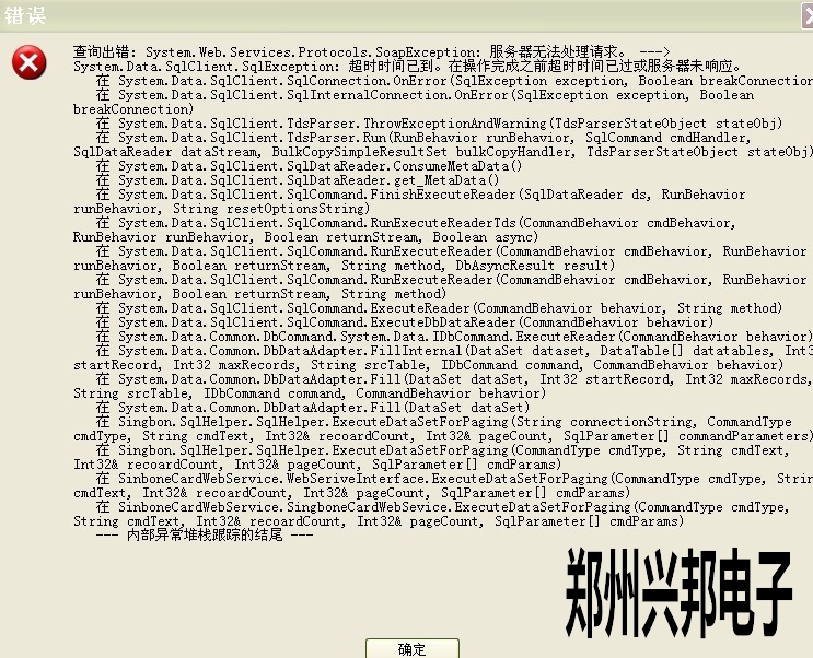 一卡通綜合管理平臺在查詢消費(fèi)記錄表時出現(xiàn)如下的錯誤提示: