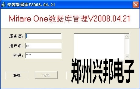 4、先點(diǎn)擊聯(lián)機(jī)按鈕,右邊消息框中提示連接數(shù)據(jù)庫(kù)成功后,點(diǎn)擊恢復(fù)按鈕,當(dāng)數(shù)據(jù)庫(kù)恢復(fù)完畢后,再次打開(kāi)軟件系統(tǒng)就可以正常登陸了。