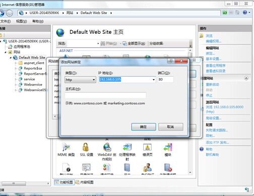 3、選擇網(wǎng)站--DefaultWebSite,選擇編輯網(wǎng)站下面的綁定