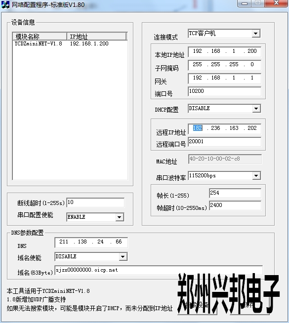 借鑒修改方法,取模塊IP地址的最后一空數(shù)字轉(zhuǎn)化為16進(jìn)制數(shù)作為模塊MAC地址的最后一位。比如模塊IP地址為192.168.1.250我們就取200,變?yōu)椋保哆M(jìn)制數(shù)為fa,那么該模塊就可以設(shè)置為40-20-10-00-02-fa