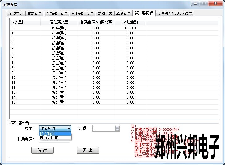 IC卡售飯機(jī)在使用時(shí),會(huì)用到一些打折功能,例如有不同種類(lèi)的客戶,1類(lèi)客戶要求按原價(jià)進(jìn)行消費(fèi),2類(lèi)客戶要求可以打九折,3類(lèi)客戶要求可以打八折,這些功能在互聯(lián)網(wǎng)平臺(tái)一卡通系統(tǒng)中都可以實(shí)現(xiàn)。