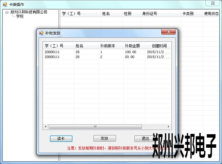 打開互聯(lián)網(wǎng)一卡通平臺,進入制卡中心 -- 卡管理。然后鼠標右鍵,選擇 發(fā)放前期補助。