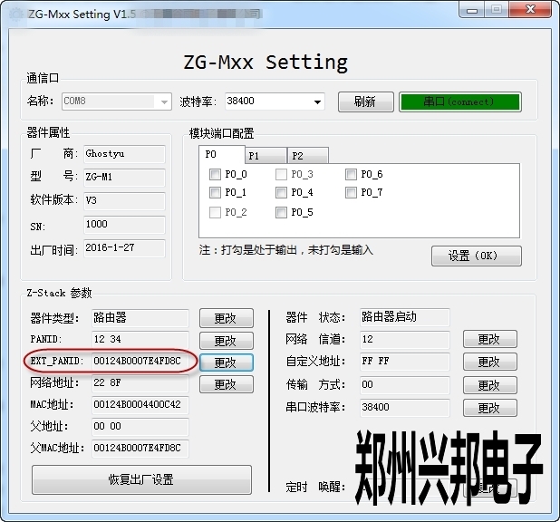 第一步:取之前的網(wǎng)絡(luò)中的一個(gè)路由器設(shè)備,使用Setting軟件讀取其擴(kuò)展PANID,如下圖:
