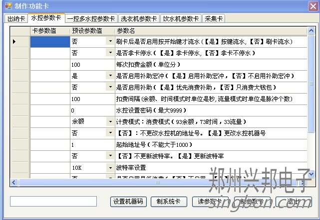 互聯(lián)網(wǎng)一卡通水控一體機的費率設(shè)置是需要在軟件里制一張設(shè)置卡,然后拿制好的卡片到機器上去刷一下。制費率卡的步驟如下: